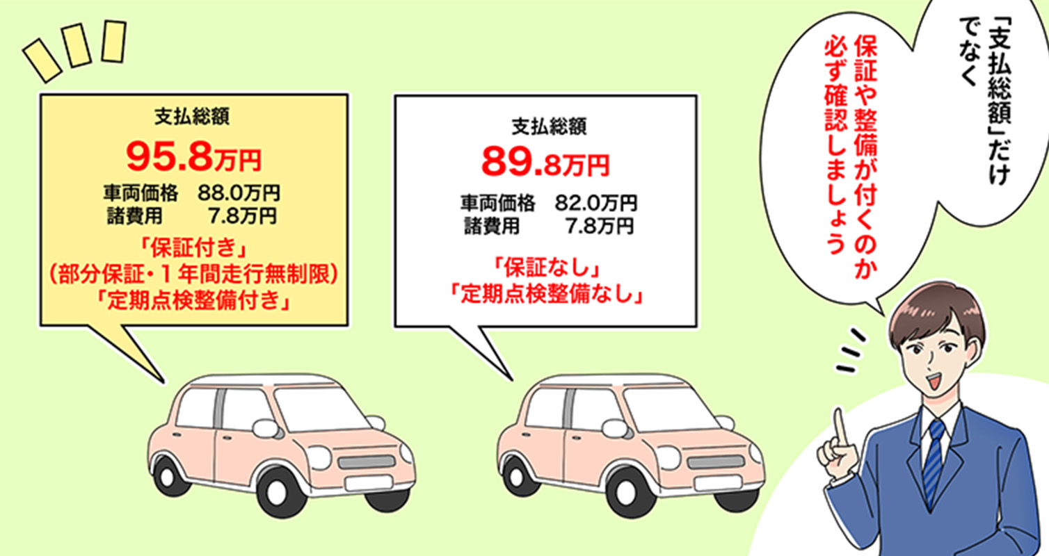 「支払総額」には、「車両価格」に「諸費用」を加えた、購入時に